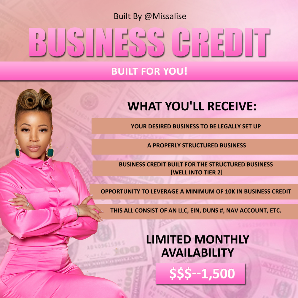 I am truly looking forward to working with you and take you and your business to the next level--the TOP level. Business Credit is where its at and you can not lose [thats the thing]. Properly investing into yourself where investment is NEEDED will always level you up.